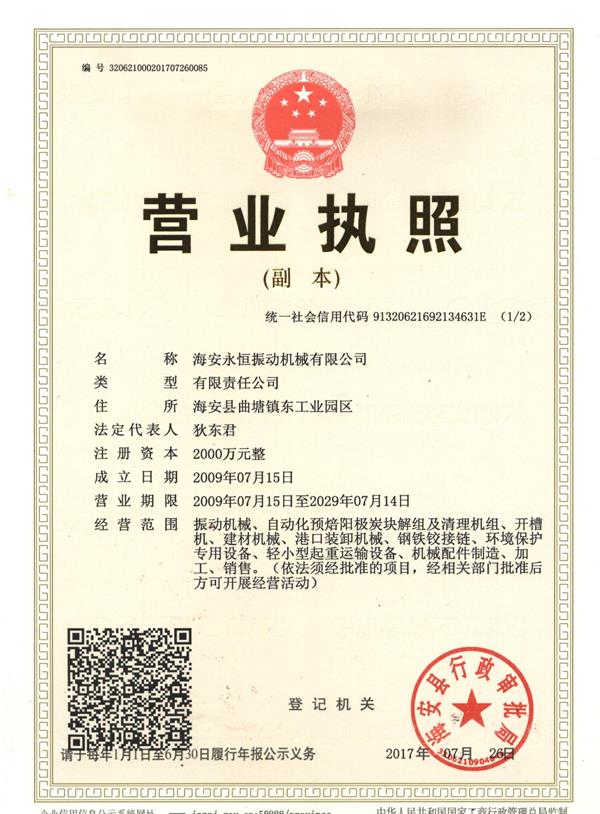 當(dāng)前所在的位置:海安永恒振動(dòng)機(jī)械有限公司 >> 資質(zhì)證書 >> 營(yíng)業(yè)執(zhí)照