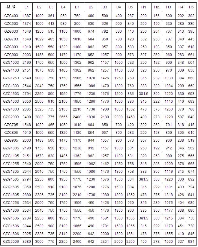 | GZG1253 | 1250×2000×315 | 320 | 100 | 4 | ZG432 | 2×3.51 | 2×1.5 | 1072 | ||