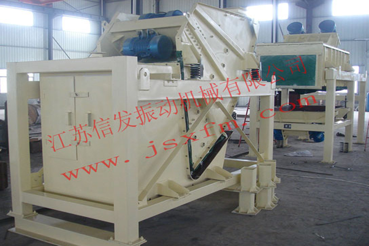 DZSF系列直線振動篩是由篩箱、篩框、振動電機、減振系統及座架等組成。直線振動篩是用振動電機作為振動源,固定在篩箱上兩臺相同的振動電機做相反方向自同步旋轉,振動電機所帶的偏心塊在旋轉時各個瞬間位置所產生的離心力之分力沿拋擲方向作往復運動